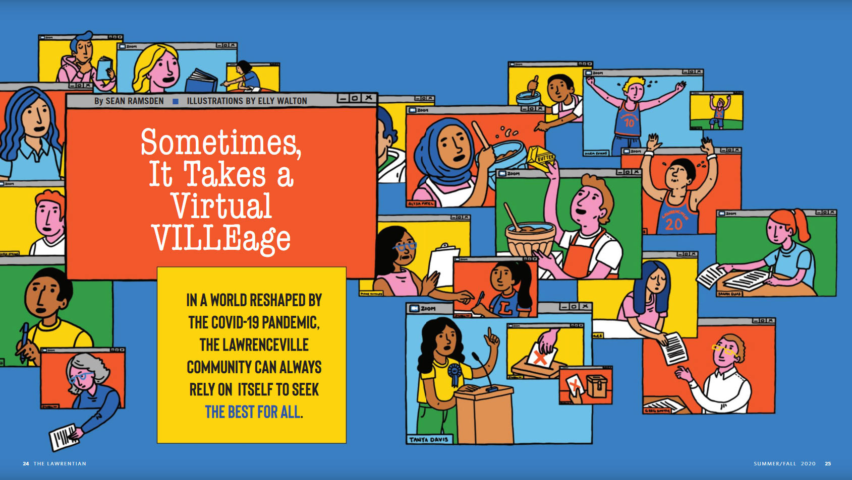 The team at Lawrenceville school asked me to illustrate for their back-to-school issue of the magazine, discussing all the issues that Covid has brought to schooling including distance learning, keeping students safe in the classroom and testing