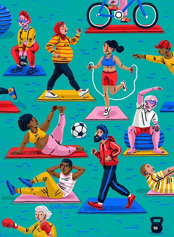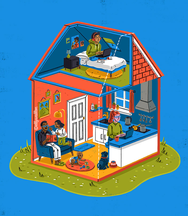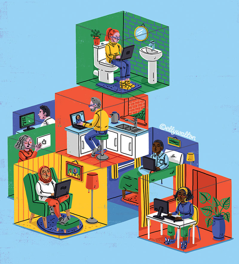 Illustrations for articles about working from home and new ways of living and working post-Covid