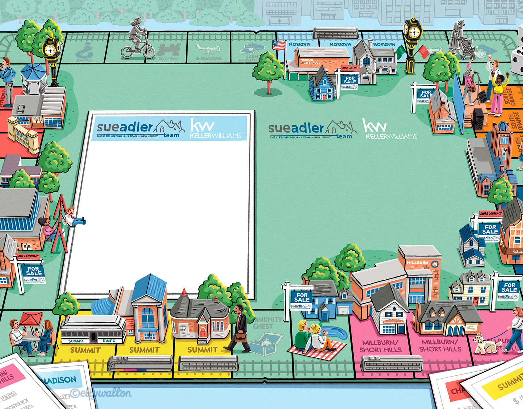 Monopoly Board Map Illustration: Sue Adler Realtors