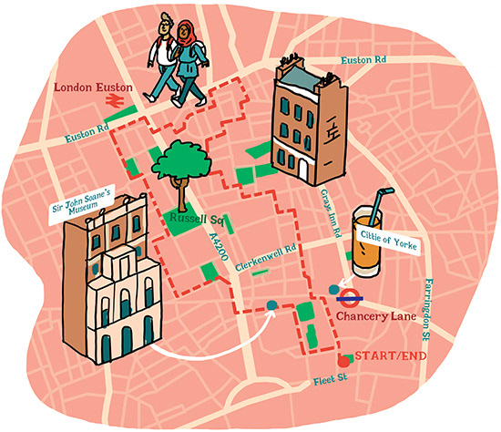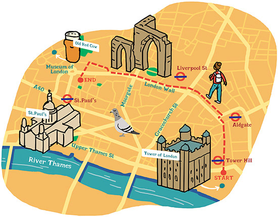 Timeout London magazine asked me to illustrate a series of seven maps to show fun and interesting walking routes in and around London city UK